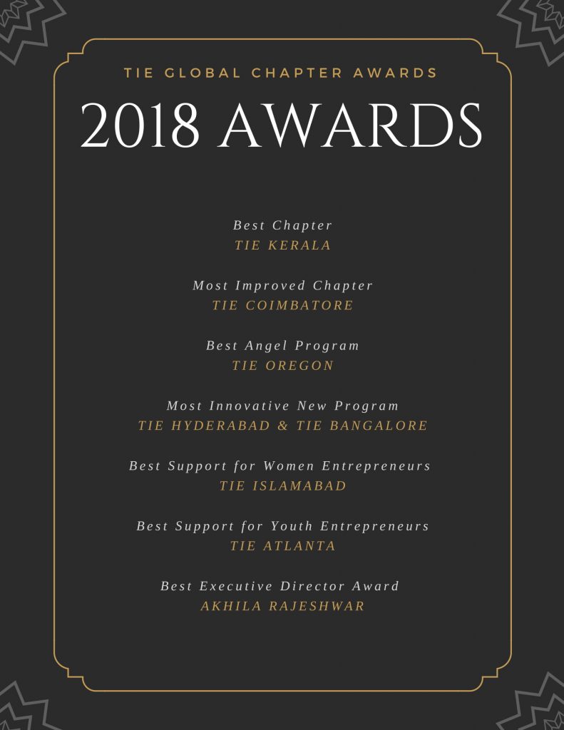 TiE Kerala has Won the prestigious TiE Global Award “The Best Chapter of the Year 2017-18”